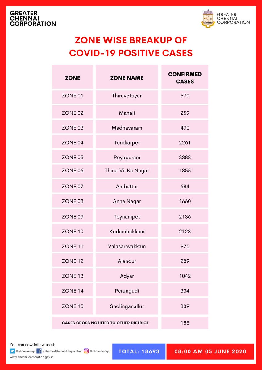 Greater Chennai Corporation On Twitter Here S The Zone Wise Breakup Of Covid 19 Positive Cases In Chennai Covid19chennai Gcc Chennaicorporation