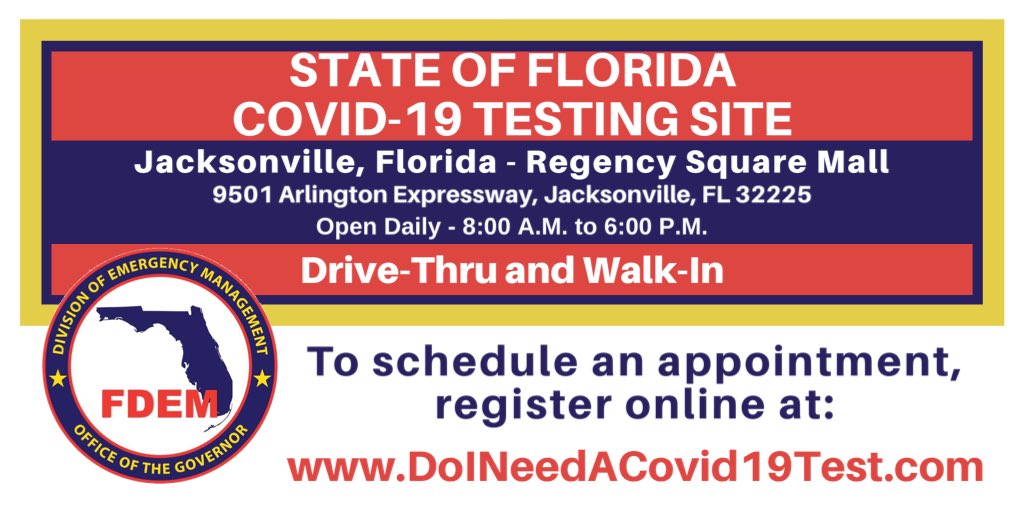 Florida Association Of Public Information Officers On Twitter State Of Fl Run Flsert Jax Covid19 Test Site At Regency Mall 7 20 20 Current Wait Time Symptomatic No Wait Non Symptomatic No Wait Can Be