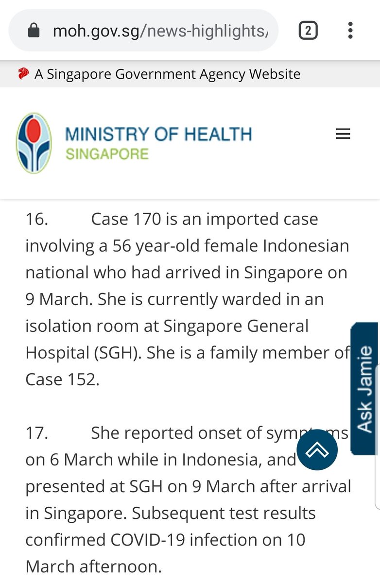 Kawalcovid19 On Twitter Singapura Mengumumkan 1 Kasus Impor Covid 19 Dari Indonesia Pada Tanggal 11 Maret 2020 Kasus 170 Adalah Keluarga Dari Kasus 152 Yang Jg Dari Indonesia Kronologi 6 Mar Mulai